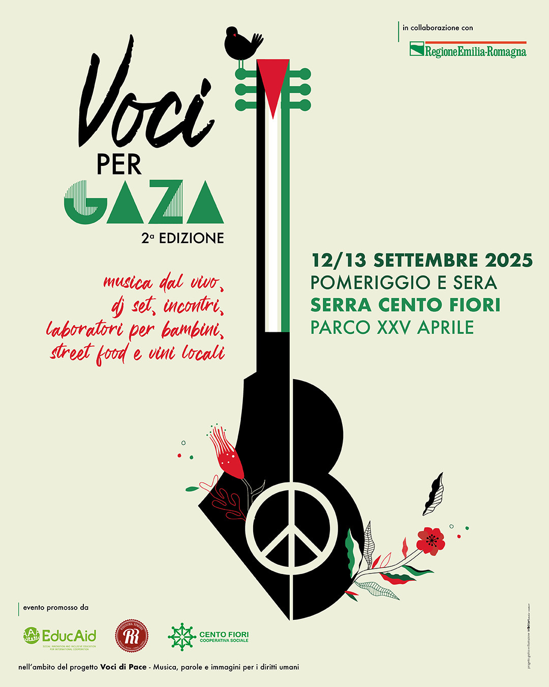 si inserisce nella rassegna organizzata da EducAid in collaborazione con la Regione Emilia-Romagna nell’ambito del Bando Pace 2024 e promossa in partnership con Provincia di Rimini; Comune di Rimini, Città di Riccione, Comune di Santarcangelo di Romagna; Anthea; Ceis – Centro Educativo Italo Svizzero; Il Millepiedi cooperativa sociale; CGIL Rimini e Gruppo Icaro – è stata resa possibile grazie al coinvolgimento di Risuona Rimini e della Cooperativa Sociale Cento Fiori